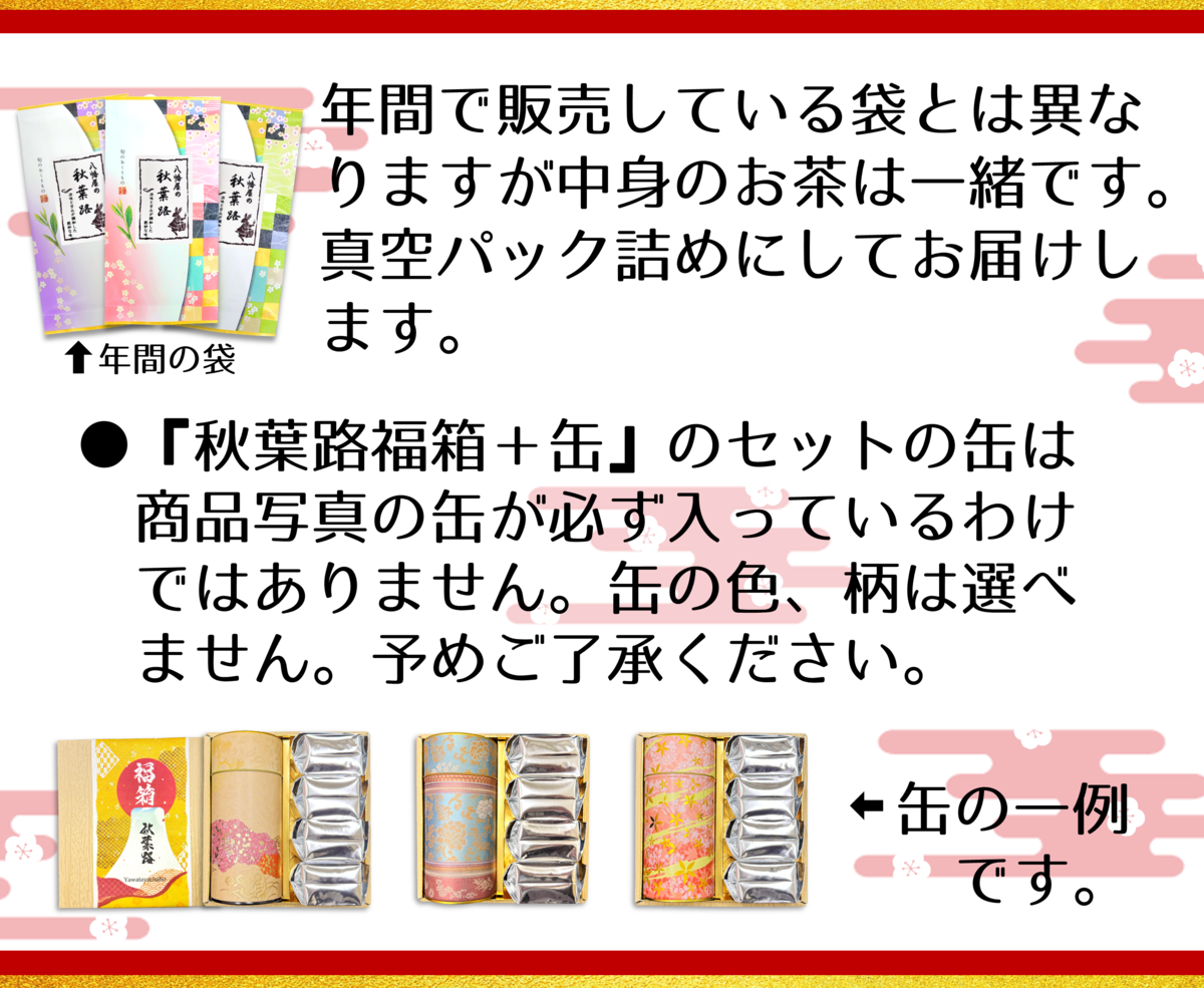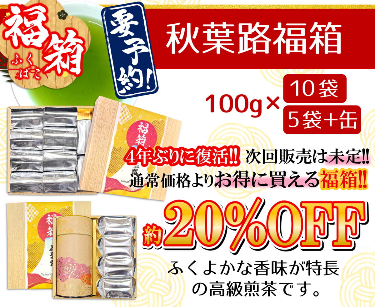 冬の贈り物&福箱 秋葉路福箱 販売価格 10,368円(税込み) 会員価格 (税込み) 通常価格 (税込み) 在庫 商品コード 4150 JANコード 秋葉路福箱 秋葉路福箱+缶 数量 - + カートに入れる カテゴリー 冬の贈り物&福箱 販売期間 2025/11/17~2025/11/30 ツイートする シェアする 〒437-0216 静岡県周智郡森町天宮1177店舗営業時間 月~土曜 8:00 - 17:00◆定休日:日祝休み 2025年11月 日 月 火 水 木 金 土 1 2 3 4 5 6 7 8 9 10 11 12 13 14 15 16 17 18 19 20 21 22 23 24 25 26 27 28 29 30 2025年12月 日 月 火 水 木 金 土 1 2 3 4 5 6 7 8 9 10 11 12 13 14 15 16 17 18 19 20 21 22 23 24 25 26 27 28 29 30 31 定休日 ショッピングガイド 特定商取引法に基づく表記 個人情報保護方針 送料について 会員規約 お問合せ