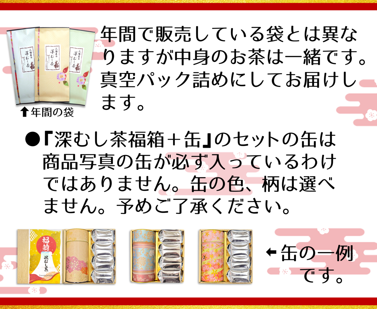 冬の贈り物&福箱 深むし茶福箱 販売価格 8,640円(税込み) 会員価格 (税込み) 通常価格 (税込み) 在庫 商品コード 4152 JANコード 深むし茶福箱 深むし茶福箱+缶 数量 - + カートに入れる カテゴリー 冬の贈り物&福箱 販売期間 2025/11/17~2025/11/30 ツイートする シェアする 〒437-0216 静岡県周智郡森町天宮1177店舗営業時間 月~土曜 8:00 - 17:00◆定休日:日祝休み 2025年11月 日 月 火 水 木 金 土 1 2 3 4 5 6 7 8 9 10 11 12 13 14 15 16 17 18 19 20 21 22 23 24 25 26 27 28 29 30 2025年12月 日 月 火 水 木 金 土 1 2 3 4 5 6 7 8 9 10 11 12 13 14 15 16 17 18 19 20 21 22 23 24 25 26 27 28 29 30 31 定休日 ショッピングガイド 特定商取引法に基づく表記 個人情報保護方針 送料について 会員規約 お問合せ